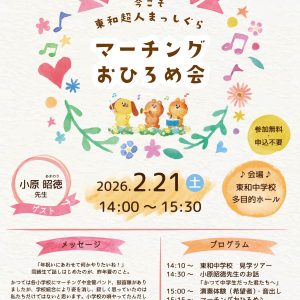 チラシお待たせしました! 2月21日(土)に年祝いのスピンオフイベントとして原点回帰なイベントを開催します! わたしたちの代だと新しくなった東和中に入ったことがない方もいると思います、、東和中の見学ツアー、そしてスペシャ… もっと読む »