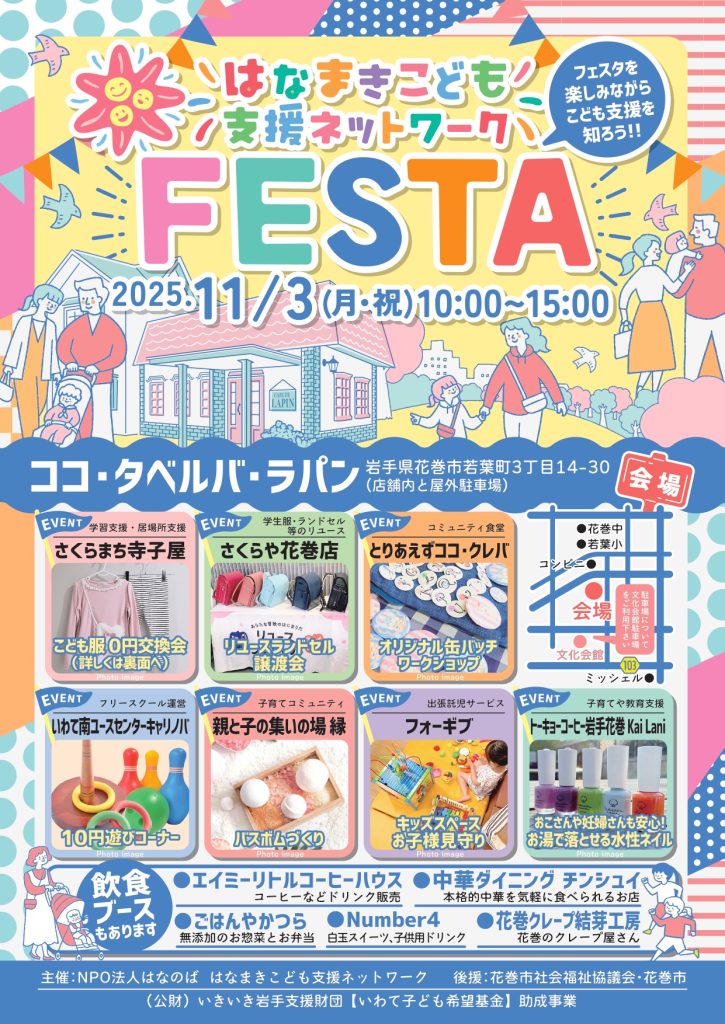 【イベント】 11/3(月祝) はなまきこども支援ネットワークFESTA