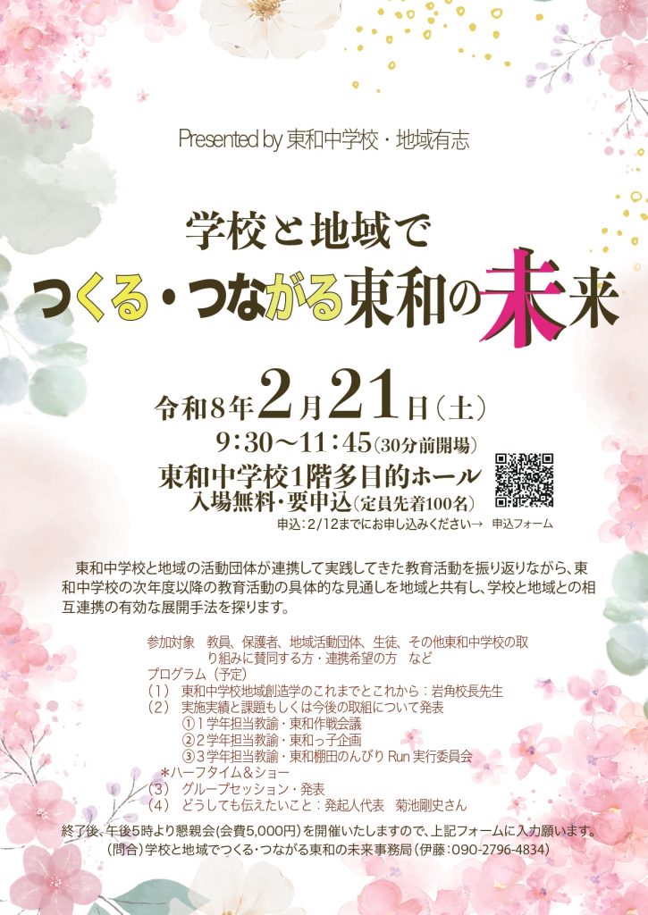 【イベント】 2/21(土) 学校と地域でつくる・つながる東和の未来 花巻市東和地域より、素敵なイベントのお知らせです✨ イージューのヨメは、なんと、ハーフタイム&ショーにて出演します(笑) 東和在住在勤の方、東和中学校の生徒や保護者の方、コミュニティスクールに興味のある方、東和の取り組みに興味のある方、ぜひ!